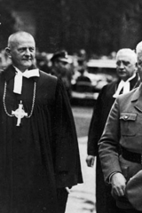 루트비히 뮐러(Ludwig Müller, 1883-1945) 주교, 프로테스탄트교회를 나치주의 이념에 맞춰 통합하려 한 '독일 기독교 운동'(Deutsche Christen)'의 지도자, 나치 정권에 협력한 어용 단체인 독일 복음주의 교회-국가교회(Reichskirche)의 제국 주교(Reichsbischof)였다. 1934.09 사진.